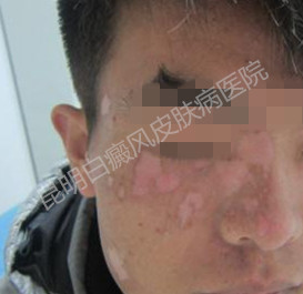 后来在网络上查到昆明白癜风皮肤病医院治疗白斑效果很好,于是便过来进行治疗。治疗几个疗程患者白斑颜色变淡,白斑处有黑色素生成。本来只是抱着试试看的心态来接受治疗,可是却没有想到昆明白癜风皮肤病医院治疗白斑的临床治疗效果如此之好,一个星期左右的时间脸上的白斑就已经明显变淡、减少了,像是吃了定心丸似的,刘建蒙又进行了几个疗程的治疗后白斑面积减小,颜色变淡,看见了显著的疗效后刘建蒙非常的开心,继续又巩固治疗了几个疗程后刘建蒙的白斑彻底消失了。
