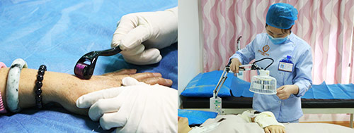 历经临床7年对中医治疗白癜风的反复研究和琢磨,从"人参、黄芪、白术、甘草..."等 上千种天然中药,提炼出激活人体酪氨酸酶活性和黑素细胞再生的药物配方,终于在2016年研创出 '中医色素再生'疗法,利用高科技设备"中医熏蒸、中医药浴、磁波塌渍等,使药物药效吸收更好,运用于白癜风色素再生治疗,成为更优越的中医治疗白癜风手段。